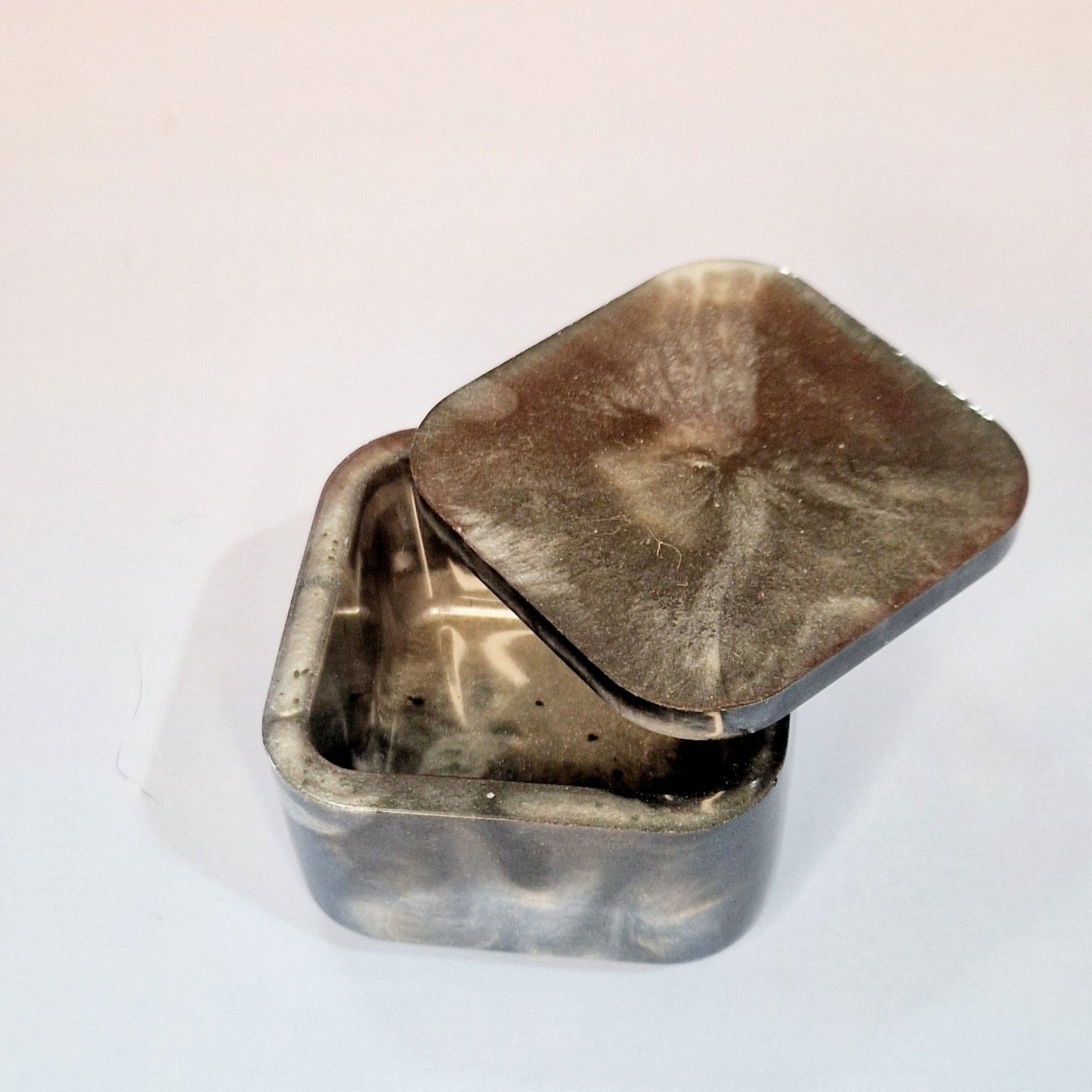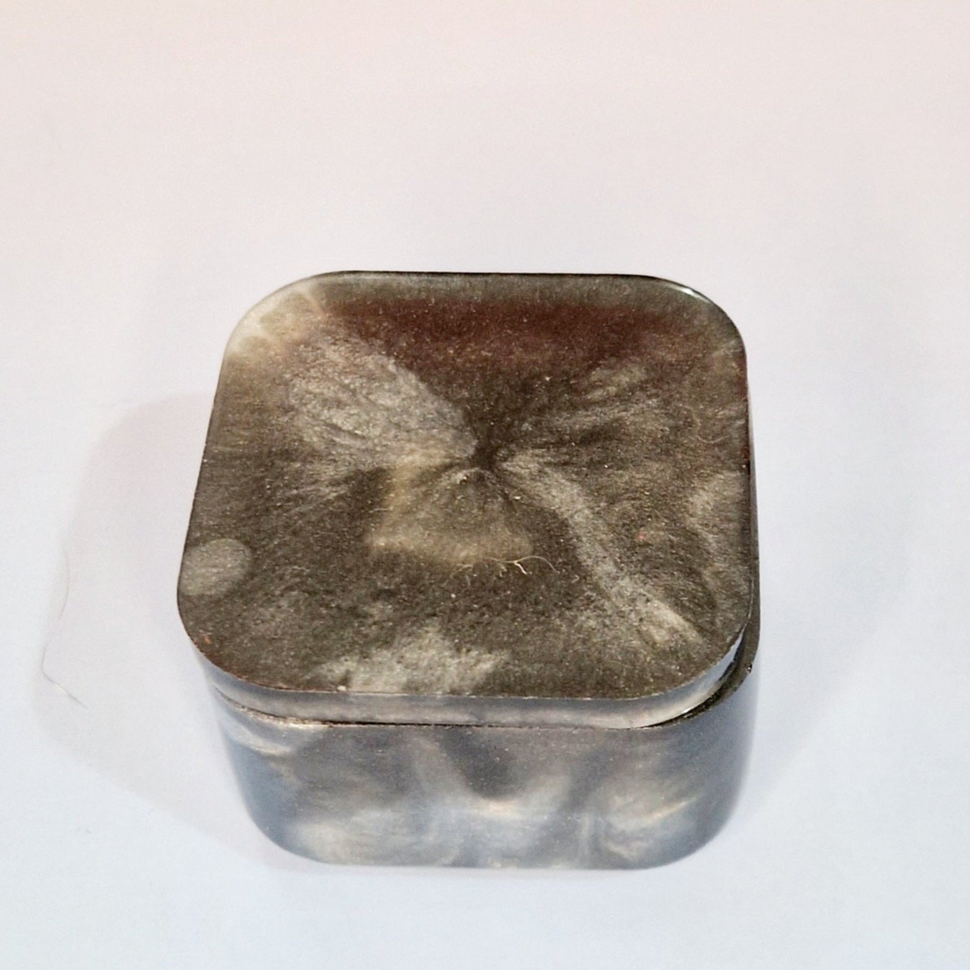 Caixa decorativa em resina com acabamento brilhante e efeito marmorizado em tons escuros, criando um visual elegante e contemporâneo. O design quadrado com tampa combina funcionalidade e estilo, sendo perfeito para guardar pequenas bijuterias, acessórios ou elementos decorativos. Uma peça moderna que acrescenta sofisticação a mesas, aparadores ou penteadeiras.